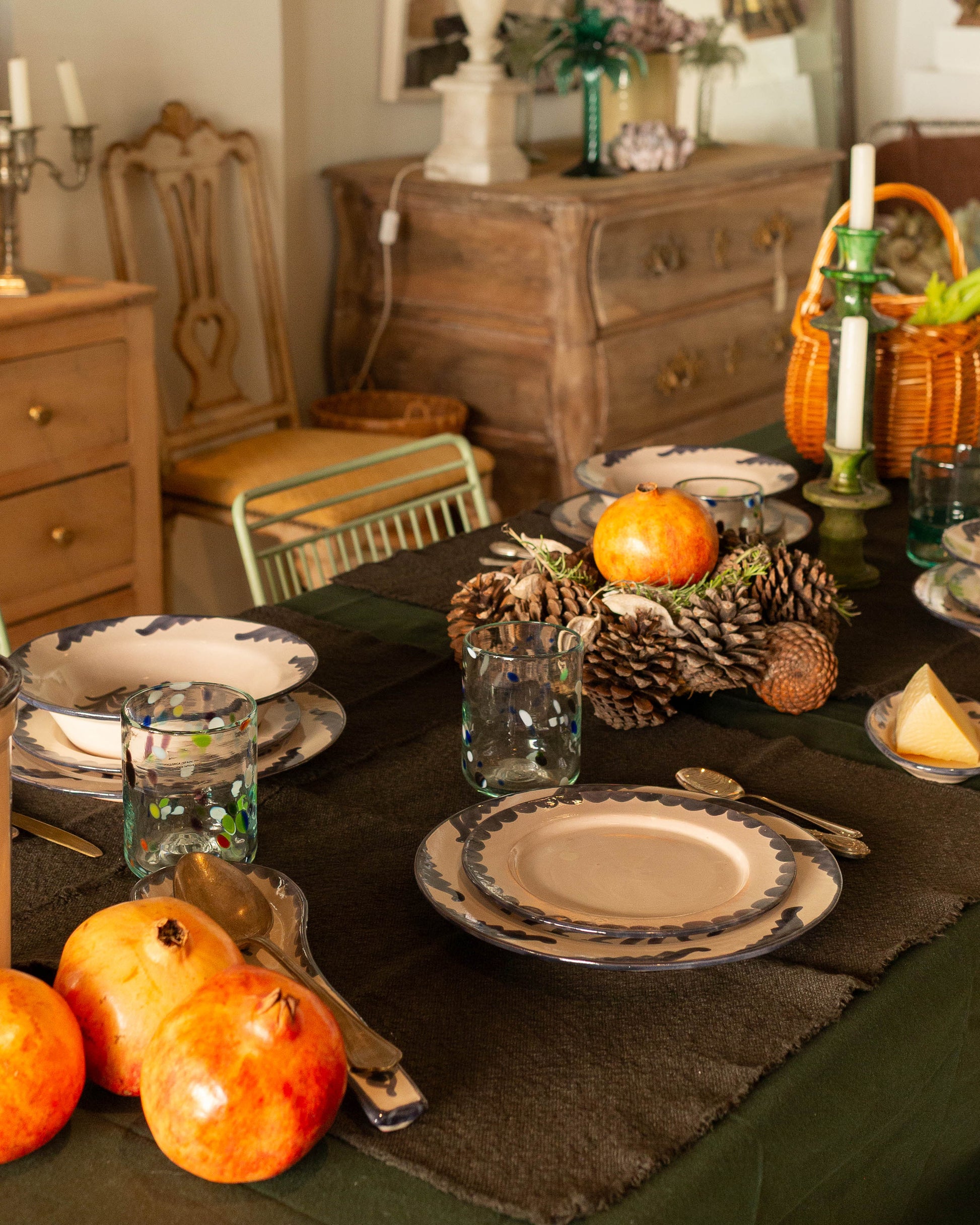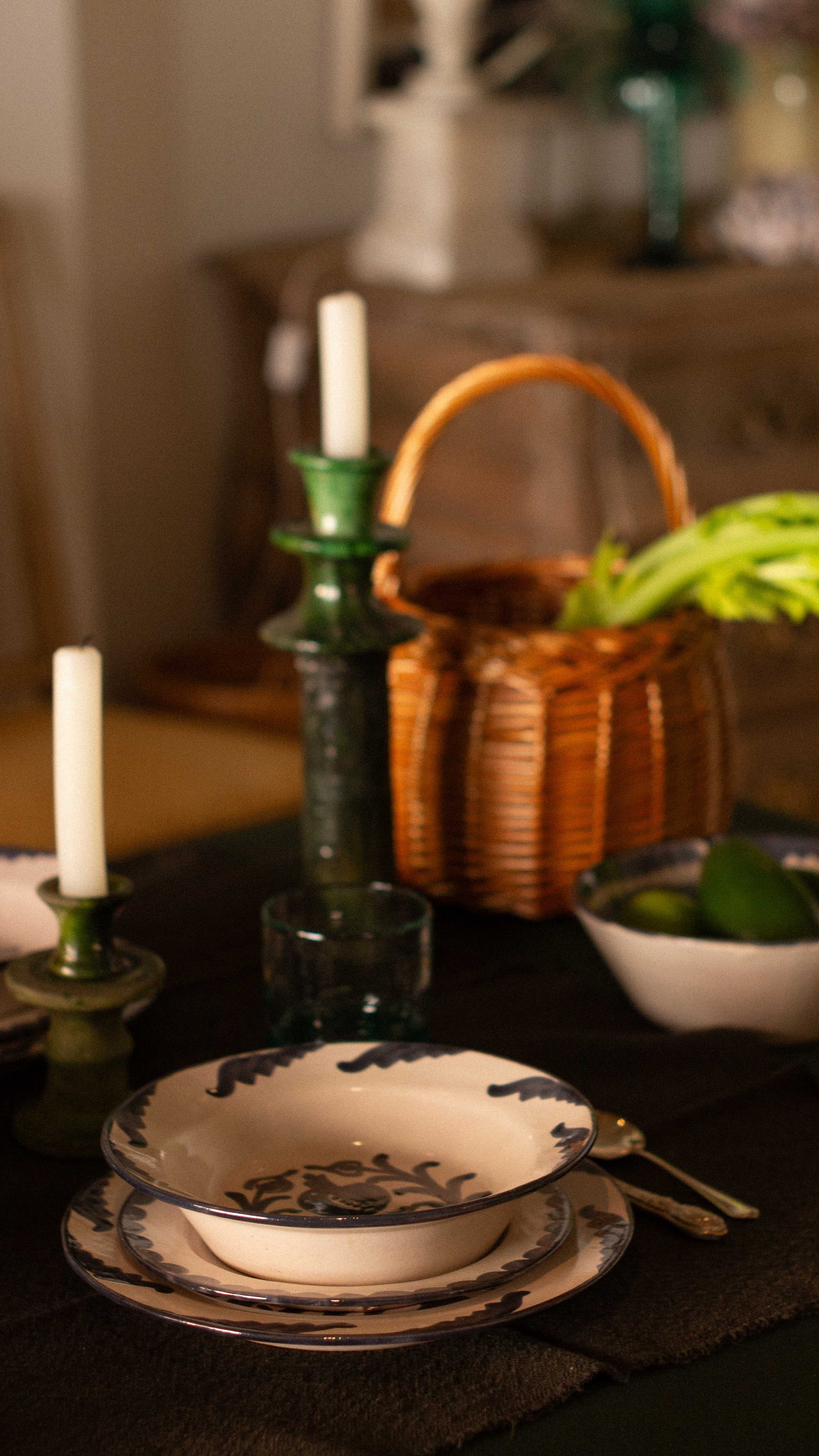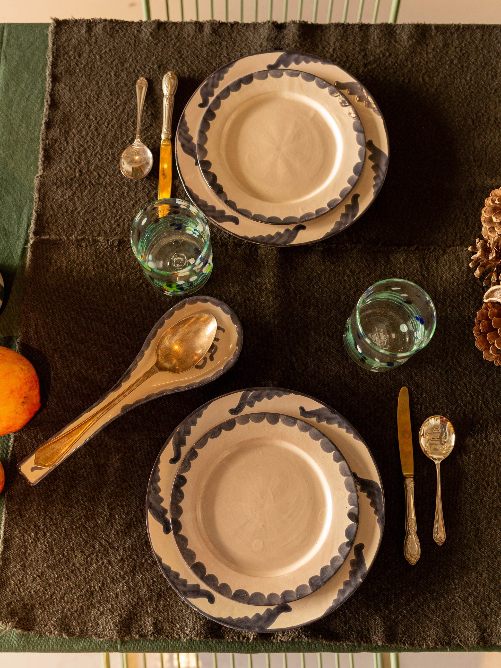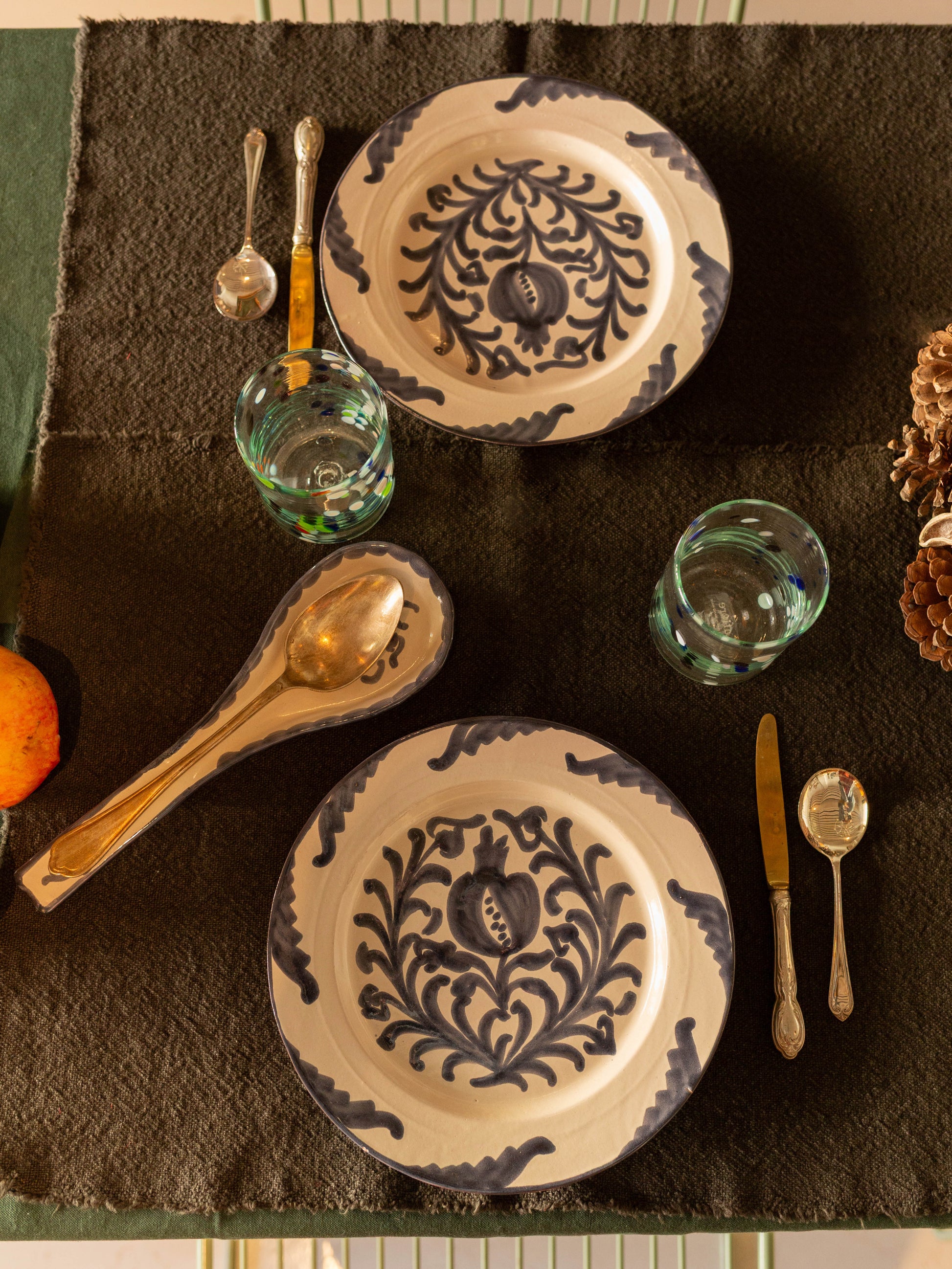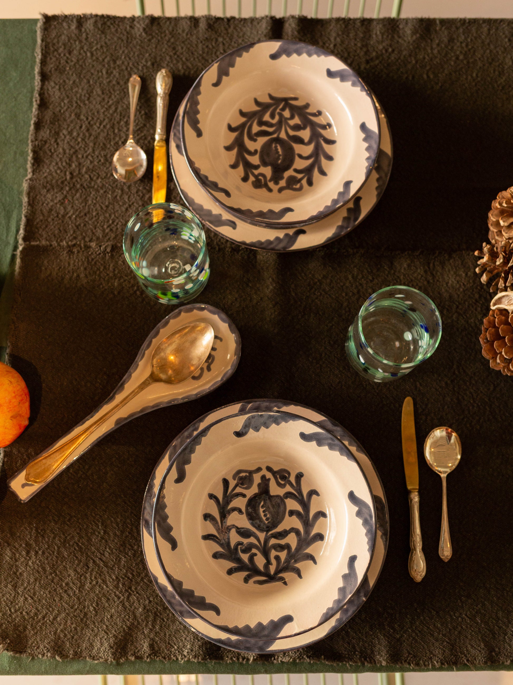 Nuestro exclusivo set de vajilla artesanal, cuidadosamente elaborado y pintado a mano en Andalucía, incluye: